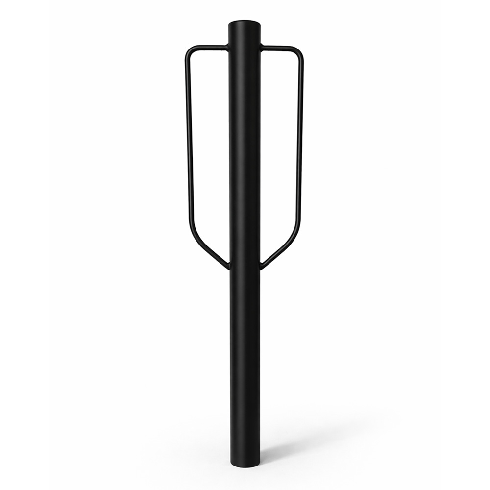 Pollaren möjliggör fastlåsning av två cyklar och lämpar sig för projekt inom fastighet, skola och offentlig sektor. Utförd i pulverlackerat stål för stabil funktion i utomhusmiljö.