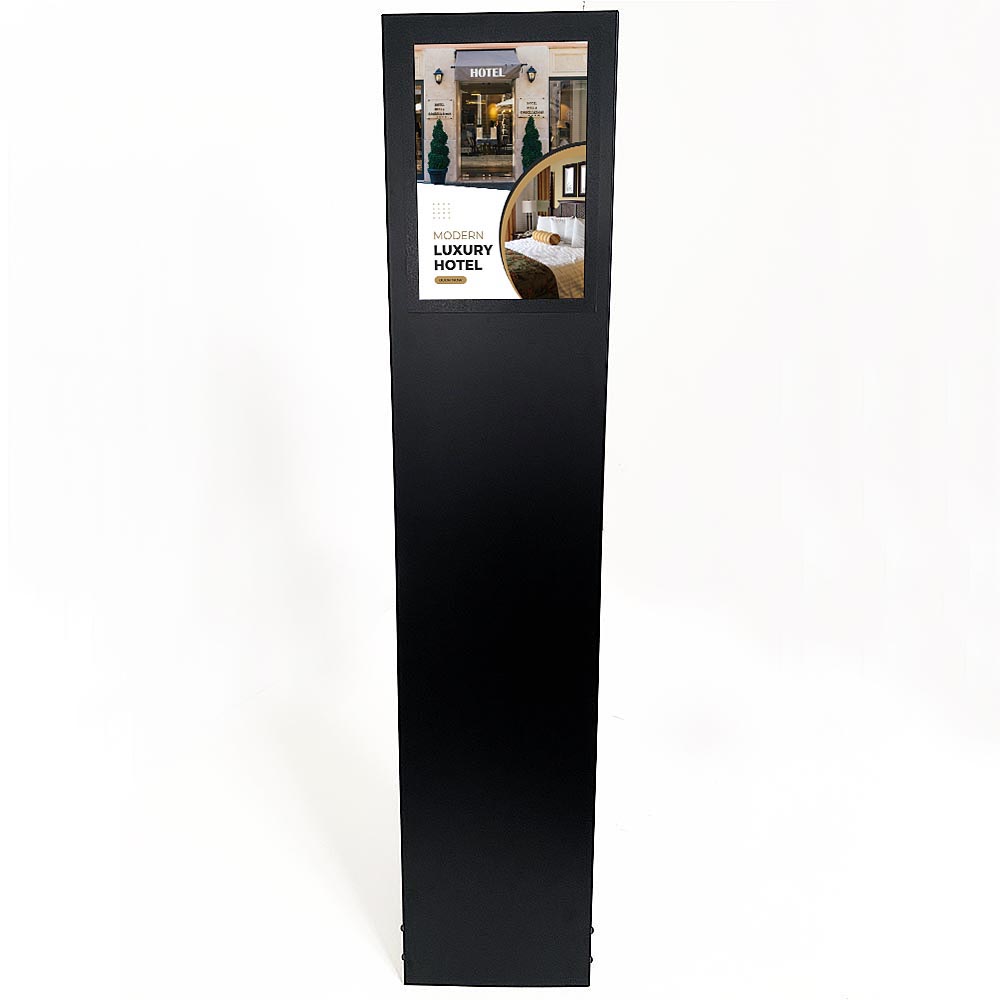 Detta informationsställ är framtaget för professionell skyltning där tydlighet och snabb uppdatering behövs. Magnetramar gör det enkelt att byta innehåll utan att demontera delar av stället.