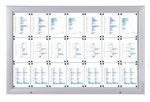 Låsbara skyltskåp för utomhusbruk - Väderbeständig IP56 Certifierad. Silveroxiderad kraftig ram med lackerad stålplåt. Låsbar främre front med silikonpackningar för bättre väderbeständighet. Bakstycke för användning av magneter eller markeringspennor. 25 mm djup på insidan av skåpet.