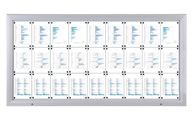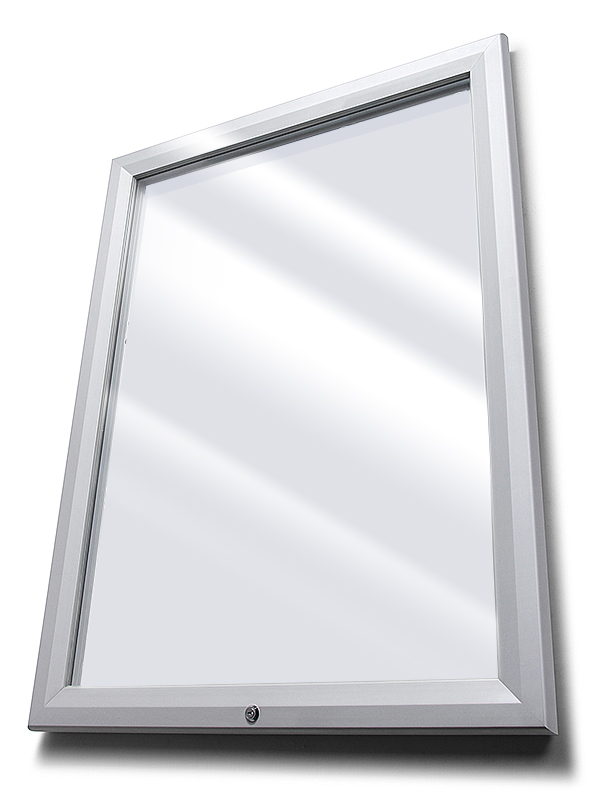 Låsbara skyltskåp för utomhusbruk - Väderbeständig IP56 Certifierad. Silveroxiderad kraftig ram med lackerad stålplåt. Låsbar främre front med 4 mm härdat säkerhetsglas och silikonpackningar för bättre väderbeständighet. Bakstycke för användning av magneter eller markeringspennor. 25 mm djup på insidan av skåpet.