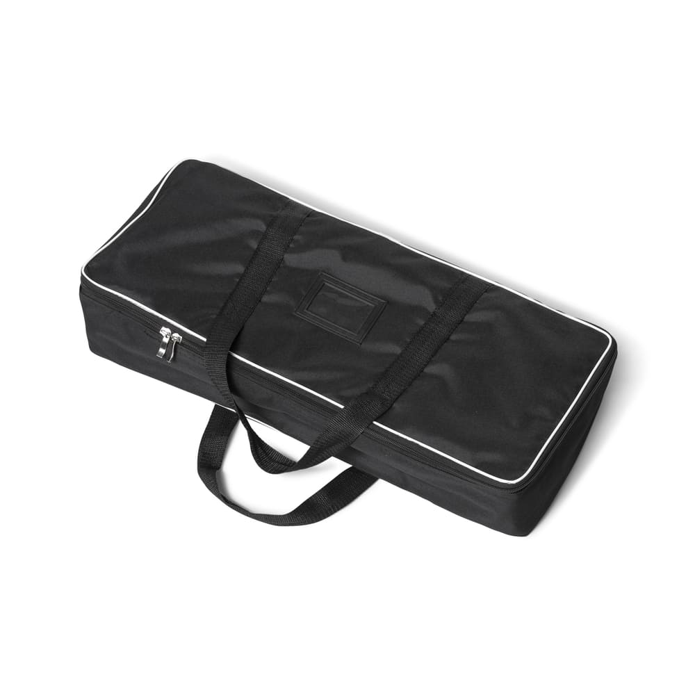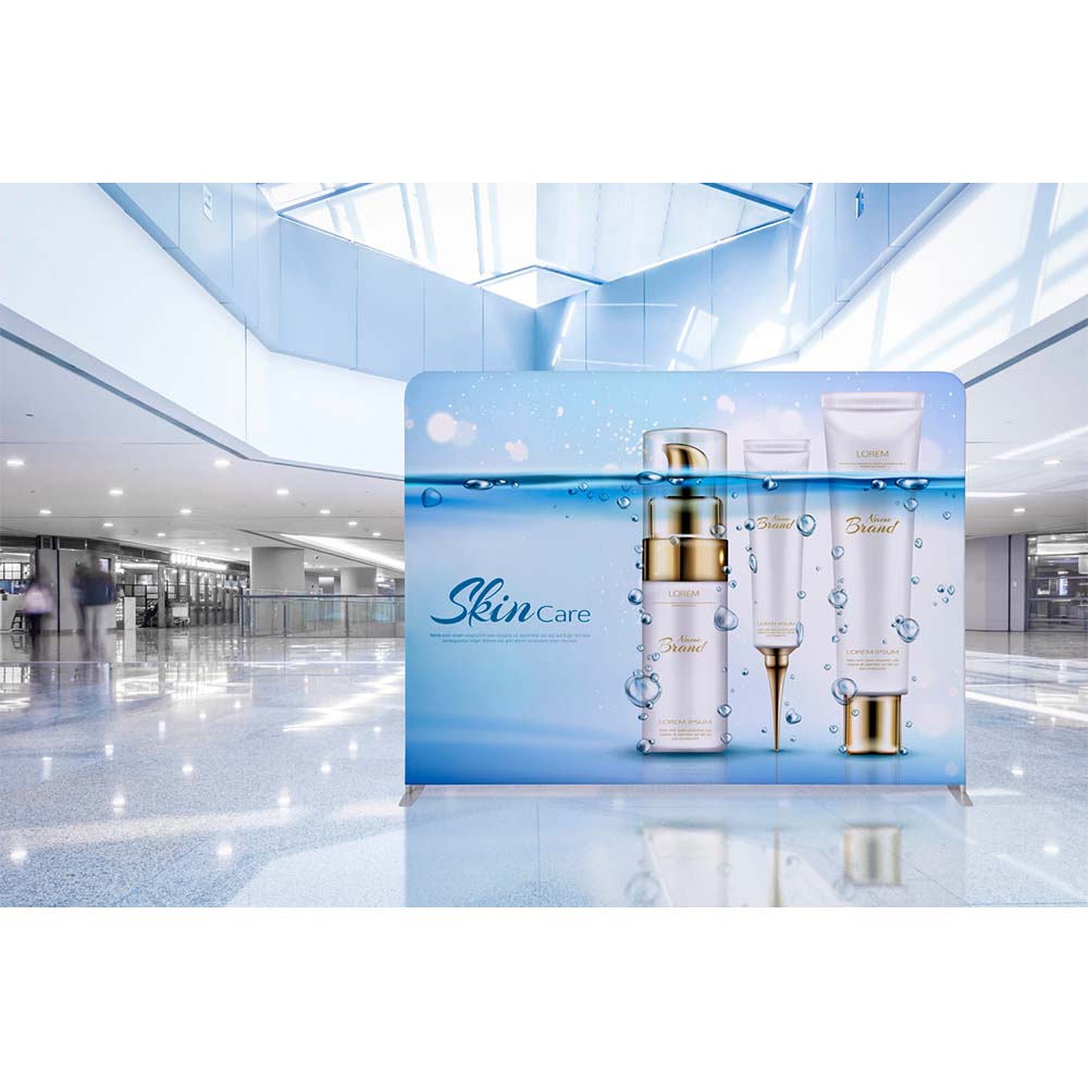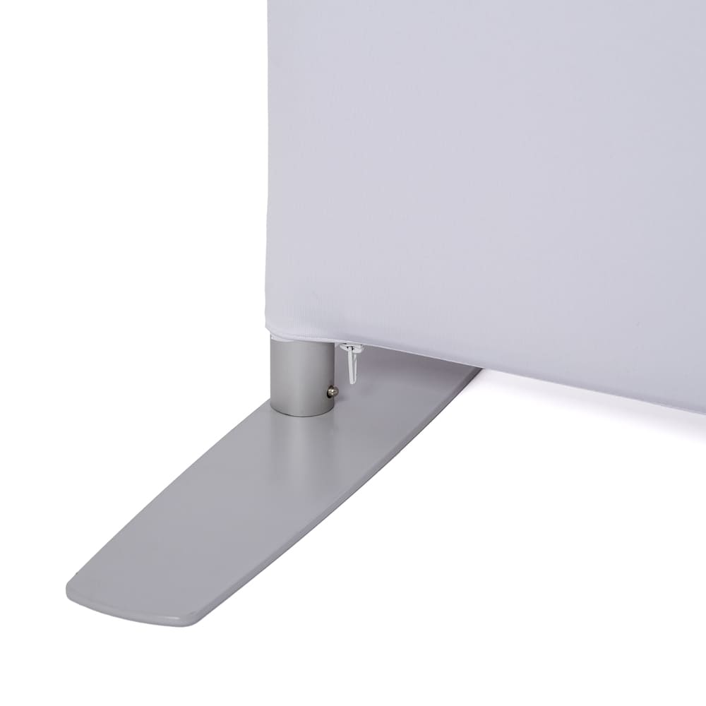 Tryckmaterialet ger en slät yta utan veck och omsluter ställningen med dragkedja. Mässväggen levereras med transportväska och är avsedd för upprepad användning vid olika typer av arrangemang.