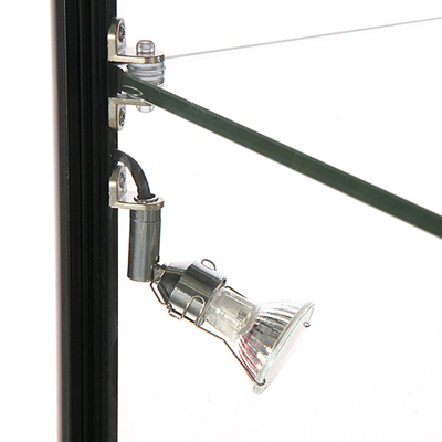 Respektive hyllplan kan monteras bort om du önskar det (hyllhållarna kan ej monteras bort.) Hyllplanen är justerbara i höjd "mellan" LED-lampornas positioner. Lamparmaturerna i sig är inte justerbara utan fast fixerade. Ström och el är ansluten i toppen av detta skåp.